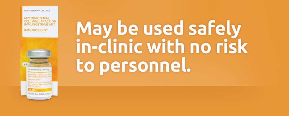 Intratumoral administration of Immunocidin® induces strong cell-mediated response which, in turn, directs the destruction of cancer cells. Remissions cannot be guaranteed as each tumor will have a variable response. Immunocidin® is USDA- and CFIA‑licensed for use in canine mammary tumors.